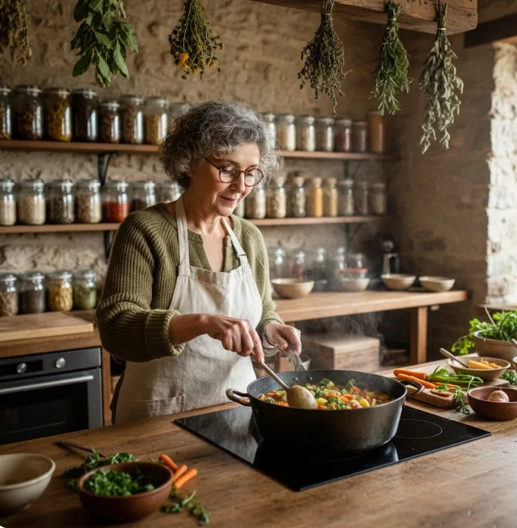 Je suis Marie-Claire, 52 ans, née et élevée à Montpellier. Ma cuisine s’est construite dans les couloirs d’une maison pleine de rires, de tabliers tachés, et de longues tablées familiales. Mon héritage culinaire vient de ma grand-mère, Louise, qui m’a appris que la meilleure cuisine est souvent celle qu’on improvise avec ce qu’on a.